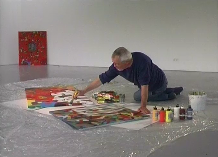„Kreis“-Künstler Ortwin Michl beim Malen am Boden. -